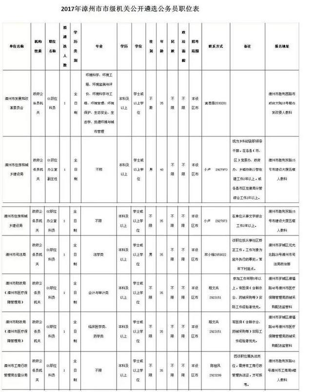 计划遴选部分市级机关副科级及以下职务层次的职位17个,公务员20名。遴选单位、遴选职位、遴选人数、职位资格条件等详见《2017年漳州市市级机关公开遴选公务员职位表》